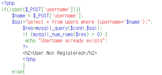 유저를 생성하기 위해 유저네임이 사용중인지 검증하는 쿼리에서